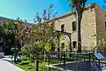 The palace is located in the territory left of the Shamakhy gate. During the khanates period of Azerbaijan, which occurred after the collapse of the Shirvanshah state in the 17th century, Baku khans lived in this palace. No official information exists about the exact foundation date; however, it is estimated to be built around 1750 by the first Khan of Baku, Mirza Muhammad Khan I. The underground bathhouse is considered to be an older structure, being built around the 17th century.[1] Upon the occupation of Baku by the Russian Empire in 1806, a military garrison was positioned in the palace. The palace used to have a garden with a pool and flowers that has now been reconstructed. Prior to the reconstruction, only the entrance portal and a small restored mosque had survived, while the underground bathhouse in the lower part of the fortress walls in the territory of the Khans' palace still remained unearthed. The latest excavations were in 1985, 1986, and 2018. Besides a lot of cultural samples, a water supply system and underground architectural constructions were also discovered here. Presently, the Palace complex consists of the house of the last Baku khan – Huseyngulu Khan as well as his family members, Abdurrahim bey and Mehdigulu bey.[2]