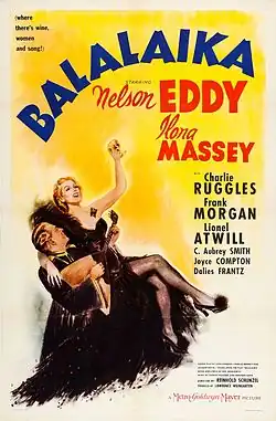 Balalaika is a 1939 American musical romance film based on the 1936 London stage musical of the same name.[1] Produced by Lawrence Weingarten and directed by Reinhold Schunzel, it starred Nelson Eddy and Ilona Massey.