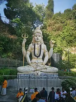 8.23m-tall statue of Lord Shiva at the foot of the hill.