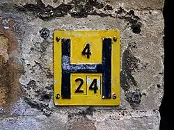 The most common example of a balbis is the capital letter 'H', the eighth letter in the ISO basic Latin alphabet. It can also be seen in, for example, rugby posts and old-fashioned television antenna.