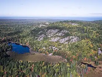 ![]() Looking Northwest over Bald Mountain and Lake Superior | |