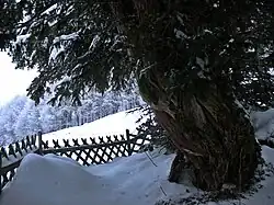 The Balderschwang Yew (German: Alte Eibe von Balderschwang) is an ancient European yew (Taxus baccata) in Bavaria. It has two hollow trunks and stands alone on a mountain pasture. It is estimated to be between 600 and 1,000 years old, and is possibly the oldest tree in Germany.[1]