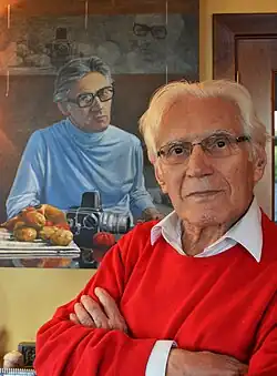 ![]() Baldomero Pestana in 2012 in front of his portrait painted by his friend, the Peruvian painter Herman Braun-Vega in 1978. | |