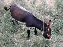 The Balearic, Catalan: Ase Balear, Spanish: Asno Balear, is a Spanish breed of domestic donkey indigenous to the autonomous community of the Balearic Islands, in the Mediterranean off the eastern coast of Spain. It is found mainly in Mallorca, the largest island of the group, and also in Menorca, where it was much used for mule-breeding; it is no longer present in the islands of Eivissa and Formentera.[4][5] Since 2006 it has been officially called the Raça Asenca Balear; it was previously known as the Raça Asenca Mallorquina,[6][4] and was also referred to as the Ase MallorquÍ, Asno Mallorquín or Mallorquín.