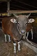 The Bali cattle are one of the few species of true cattle that did not descend from the extinct aurochs.[2] Their domestication occurred around 3500 BC, originating from banteng.[3]