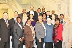 The Baltimore City Delegation refers to the delegates who are elected from districts in Baltimore to serve in the Maryland House of Delegates in the United States.[1] By 1983, the Baltimore City Delegation had 27 members, 3 each from 9 districts totally within Baltimore City. At the beginning of the 2023 legislative session that number had dropped to 14 members due to a loss in population in Baltimore City.