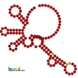 ![]() Predicted secondary structure and sequence conservation of BaMV_CRE | |