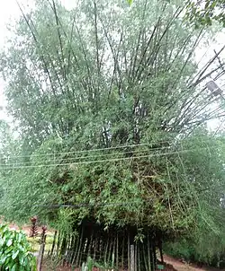 Bambusa bambos, (synonym Gigantichloa maxima) the giant thorny bamboo, Indian thorny bamboo, spiny bamboo, or thorny bamboo (but see Bambusa spinosa)[2][3][4] is a species of clumping bamboo native to southern Asia (India, Bangladesh, Sri Lanka and Indochina). It is also naturalized in Seychelles, Central America, West Indies, Java, Malaysia, Maluku, and the Philippines.[5][6]