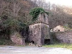 [20] These remains are at the northern entrance of the village including a blast furnace. The supply canal is fed by the waters of the Nive captured upstream and turn a wheel of a blower machine which injected air at the base of the blast furnace through two nozzles. The adjacent building, still dominated by the canal, housed the forge fires and hammers to make cast iron and a splitting mill for splitting iron bars. - Houses and Farms (19th century)
