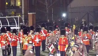 The Band of The Royal Regiment of Canada is a Canadian military band that serves as the official regimental band of the Royal Regiment of Canada. It is the oldest permanently organised band in the Canadian Forces. It is based at Fort York in Toronto and is assigned to the part of 4th Canadian Division's 32 Canadian Brigade Group. The ceremonial dress uniform of the band is that of the former Canadian Guards regiment, a scarlet tunic and bearskin with a red-over-white plume.[1][2]