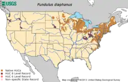- ^ a b c Fuller, Pam; Neilson, Matt (21 May 2019) [Peer reviewed on 1 November 2011]. "Fundulus diaphanus (Lesueur, 1817)". Nonindigenous Aquatic Species Database. Gainesville, Florida: U.S. Geological Survey. Retrieved 21 February 2023.