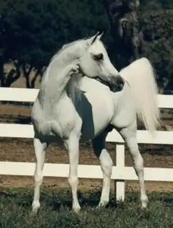 Bandos (1964 – September 1987) was a gray Arabian stallion with Crabbet ancestry.[3] He was sired by Negatiw, a Tersk bred stud, out of Bandola, who was known by the title of "Queen of Poland".[4] Bandos was a sire in Poland for 11 years, and in 1982, he was imported to the United States.