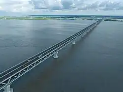 The Ganges delta is formed by the confluence of the Ganges (local name Padma or Pôdda), Brahmaputra (Jamuna or Jomuna), and Meghna rivers and their tributaries. The Ganges unites with the Jamuna (main channel of the Brahmaputra) and later joins the Meghna, finally flowing into the Bay of Bengal. Bangladesh is called the "Land of Rivers",[81] as it is home to over 57 trans-boundary rivers, the most of any nation-state. Water issues are politically complicated since Bangladesh is downstream of India.[82]