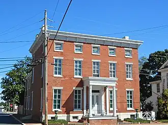 Bank House is a historic home located at Milford, Kent County, Delaware, United States. It was built between 1854 and 1857, and is a three-story, five-bay, brick Greek Revival-style dwelling. It measures 42 feet by 34 feet and has a two-story, L-shaped wing measuring 40 feet by 18 feet. It has a flat roof and features an entrance portico supported by classic Corinthian order fluted columns. It was designed to be the banking house for the Bank of Milford, and included bank operations and housing for the cashier of the bank and his family. The bank failed before the building was complete, then completed by a physician who completed it as his residence and medical office.[2]