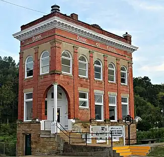 Bank of Cairo, now known as Cairo Town Hall, is a historic bank building located at Cairo, Ritchie County, West Virginia. It was built in 1897, and is a 2+1⁄2-story brick structure with Romanesque and neoclassical details. It features a unique corner entrance. It housed a bank founded by Jacob Cattaui, the son of a wealthy Egyptian banker and cotton plantation owner in 1897. The bank was housed in the same building since its inception in 1897 to 1931 and from 1941 to 1974. It now houses the Cairo Town Hall and serves as a stop on the North Bend Rail Trail.[2]