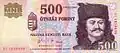 | 500 Ft | 154 × 70 mm | orange and brown | Prince sovereign Ferenc II Rákóczi (by Ádám Mányoki) | The Hungarian Parliament Building and the Hungarian Revolution flag of 1956 | 50th anniversary of the Hungarian Revolution of 1956 | 2006 | 20 October 2006 | 31 October 2019 | 31 October 2039 | ||