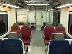 The trains on the Barcelona–Vallès Line are currently the 112, 113 and 114 Series. There are a total of 66 electrical multiple units, all of which are disabled-accessible, air-conditioned and equipped with the automatic train protection (ATP) security system.[37] The trains are technically very similar, though the 112 Series are notably different than the 113 and 114 Series in their design. They all feature the colors of the Ferrocarrils de la Generalitat de Catalunya (FGC) logo—white and orange.[38][39][40]