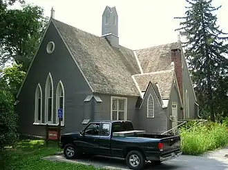 The chapel, built in 1859, was commissioned by the John Bard family in 1857. The original chapel was designed in the gothic revival style by Frank Wills. In 1858, two days after Christmas, the chapel was destroyed by a fire caused by a defective flue. Because the chapel was uninsured, a new building was constructed at the cost of $34,000. The existing chapel was constructed in 1859 by Charles Babcock. In 1915, the interior of the chapel was redesigned by acclaimed architect Ralph Adams Cram.[6]