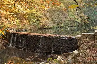 The Bard Springs Dam No. 1 is a historic recreational support facility in Ouachita National Forest. It is located at the Bard Springs recreation site, southeast of Mena and north of Athens in Polk County, off County Road 82 and Forest Road 106 on the banks of Blaylock Creek. This dam is located at the western end of the recreation area, and is about 65 feet (20 m) long and 8 feet (2.4 m) high at its center. It is made of fieldstone, and has a series of chutes and steps across its top. It was built in 1936 by a crew of the Civilian Conservation Corps, and is one of four surviving CCC structures (the others are a second dam, bathhouse, and a picnic shelter) in the immediate area.[2]