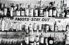 In the 1930s,[8] 1940s,[1] or around 1953[9] John Anthony put up a sign among the old license plates and other ephemera along the wall behind the bar that read "FAGOTS [sic] – STAY OUT". Though Anthony was known to be antagonistic towards gays,[1][10] going as far as posing (in front of his sign) for a picture in a 1964 Life article on "Homosexuality in America" over a caption where he exclaims "I don't like 'em...",[11] the sign ostensibly was put up as a response to pressure from the police who had a tendency towards discriminatory practices against gays and consequently establishments that catered to the group.[8][9]