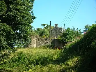 The ancient mansion or castle[3] of Kersland stood on Easter (now 'East') Kersland Farm. The remains of the 'L-Plan' tower has been built into the farmhouse. The barmkin wall survives and has a surviving strong defensive corner tower.[4] Paterson records that the house was almost entirely pulled down by the feuar, Robert Ker.[5] The remaining two barrel vaulted chambers, later used as a dairy and stable, with walls 8 ft thick, until recently formed part of the offices attached to East Kersland.