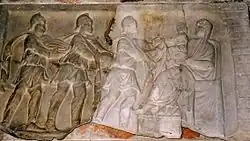Following the Edict of Milan that allowed Christian worship, the faithful of Vicenza reserved an area in the necropolis for the burial of their dead[2] and constructed a building there for worship: the finds represent the first evidence of the Christian faith in the city. The stele of the Adoration of the Magi, the most important evidence of the Christian cemetery, also dates to this period – the end of the fourth century.[3]