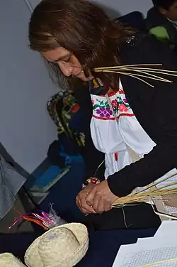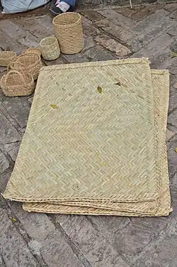 The best known basketry of the state is done by the Mixtecs, whose territory extends over parts of Oaxaca, Puebla and Guerrero.[4] Traditionally their work was almost exclusively done with palm fronds and noted in the Sierra Codex. However, environmental degradation has made this raw material scarce, putting the craft in danger. Those who still work with it create petates, soyates, fans, tenates and sombreros, and for a number of households, it is their only source of income. The old fretwork decorative designs have almost disappeared, but people can still be seen working the fronds in various public spaces. Despite this, the finest petates are made in this region, along with the town of San Luis Amatlán. There are programs to support basket makers in the Mixtec area of Oaxaca, such as FIDEPAL (Fideicomiso de la Palma), a society dedicated to conserving and promoting the craft.[1][4]