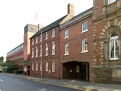 Council meetings are held at both Worksop Town Hall, built in 1851,[28] and Retford Town Hall, built in 1868,[29] both of which the council inherited from its predecessor authorities. The council's main offices are at Queen's Buildings, completed in 1981 on Potter Street in Worksop, adjoining the Town Hall.[30] The council also maintains an area office in Harworth.[31]