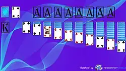 The stock is turned up one card up at a time. The topmost card can be moved to the foundations or the tableau. Only one pass is allowed through the deck, making this an extremely hard game to win.