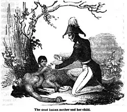 On August 3, 1832, the day after the battle, Indian Agent Street wrote to William Clark describing the scene at Bad Axe and the events that occurred there. He stated that most of the Sauk and Meskwaki were shot in the water or drowned trying to cross the Mississippi to safety.[19] Major John Allen Wakefield published an account of the war in 1834, which included a description of the battle. His description characterized the killing of women and children as a mistake:[20]
