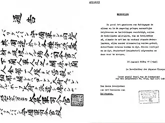 To carry the aforementioned ultimatum to the defenders, Sakaguchi tasked Capt. Gerard Reinderhoff, former chief of staff to the Tarakan garrison commander, Lt.-Col. Simon de Waal and Capt. Anton Colijn, manager of the BPM oil company on Tarakan, KNIL reservist and son to the former Dutch prime minister Hendrikus Colijn. On the morning of 16 January, they steamed to Balikpapan aboard the captured BPM motor schooner Parsifal with an Indonesian captain and three Japanese interpreters[4] (other sources say two Japanese naval lieutenants and two sailors;[15] others mentioned three Japanese interpreters and two Indonesian police officers).[16]