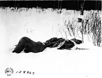 ![]() A Workers' and Peasants' Red Army soldier that was killed during an attempted flank attack on Allied positions along the Obozerskaya road at Verst 16. April 8, 1919 | |||||||