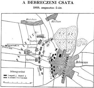- ^ Horváth Attila: Az 1849. augusztus 2-i debreceni ütközet Debrecen 2016, pp. 30-31