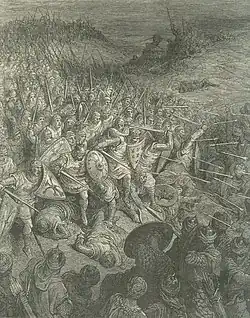 The Battle of Dorylaeum took place during the First Crusade on 1 July 1097 between the crusader forces and the Seljuk Turks, near the city of Dorylaeum in Anatolia. Though the Turkish forces of Kilij Arslan nearly wiped out the Crusader contingent of Bohemond, other Crusaders arrived just in time to reverse the course of the battle.[4]