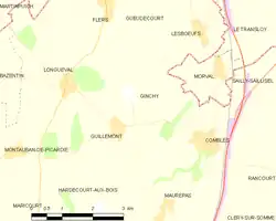 On the evening of 6 July, German troops were spotted moving into Ginchy, by a 9 Squadron observer and were machine-gunned but a call for artillery-fire went unanswered. Later on more troops were seen and engaged by artillery, prisoners later stating that a battalion lost half its men.[35] On 22 July, 9 Squadron observers reported that new digging was seen around Ginchy, part of a line of entrenchments from Combles to Gueudecourt.[36] On 18 August, British artillery-fire was directed on Ginchy, again by 9 Squadron. On 3 September a reconnaissance flight by 3 Squadron over Ginchy reported no great mass of German infantry, the aeroplane was not fired on and huddled bodies were taken to be German dead.[37]