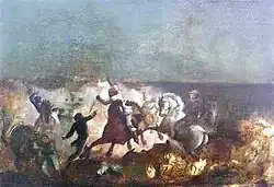 Arturo Michelena, Vuelvan Caras. The painting depicts the incident in which José Antonio Páez ordered his llaneros to turn around and attack the Spanish cavalry that was pursuing them.