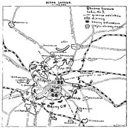 Initially, the city was not to be defended, as it was considered to be too deep behind the Polish lines and too important to Polish culture for warfare.[1] However, the speed of the Nazi invasion and the almost-complete disintegration of the Polish reserve Prusy Army after the Battle of Łódź resulted in the city being in danger of a German assault. On September 7, 1939, General Władysław Langner started to organise the defence of the city.[2] Initially, the Polish forces were to defend the Bełżec – Rawa Ruska – Magierów line against the advancing German forces. General Rudolf Prich was given command of the Polish forces in the area, and on September 11, he prepared a plan to defend of the area. The Polish units were to defend the line of the San River, with nests of resistance along the Żółkiew – Rawa Ruska – Janów to the west of the Wereszyca River – Gródek Jagielloński line.[2]