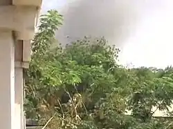 Witnesses reported hearing anti-tank and automatic weapons fire coming from the city centre, at around 05:00 am.[31] Reuters reported that the city was divided in two, with the rebels controlling the southwest.[32] Running out of ammunition, government troops gave up the defense of the main radio station; after the rebels departed the scene, the building was looted and set on fire. Reports also say that a government helicopter that was chasing rebels hit the main market with a missile, setting off a round of looting that resulted in the market being torched.[33]