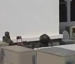 Chadian rebels were reported to have entered N'Djamena around 07:00 am on Saturday February 2, 2008,[25] coming from Massaguet. The rebels then split into two columns. One was halted 3 km from the presidential palace, where government tanks fired at it. The other took control of the eastern parts of the city, and then swung towards the presidential palace, where it too was halted by tank fire.[24] Eyewitnesses reported seeing rebel activity in the south and east of N'Djamena, with fighting later spreading to the area around the presidential palace. Smoke rose from the city, which shook from artillery. One resident of a western embassy told Reuters: "Rebels are headed for the palace and are about two blocks from here. The rebels are winning".[25][26] The residence of the Saudi ambassador was hit by a bomb during the fighting, which led to the death of the wife and daughter of one of the embassy staff. Rebels in 15 vehicles drove past the Libya Hotel, which overlooks the parliament building, a few hours after the start of the battle. Fighting was reported to have died down by 12:45 pm, with the state radio station going off air around the same time.[2]
