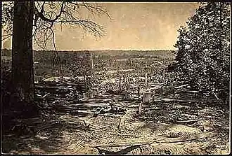 The Battle of Peachtree Creek was fought in Georgia on July 20, 1864, as part of the Atlanta Campaign in the American Civil War.[3] It was the first major attack by Lt. Gen. John Bell Hood since taking command of the Confederate Army of Tennessee.[4] The attack was against Maj. Gen. William T. Sherman's Union army, which was perched on the doorstep of Atlanta. The main armies in the conflict were the Union Army of the Cumberland, commanded by Maj. Gen. George Henry Thomas and two corps of the Confederate Army of Tennessee.