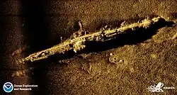 On May 5, U-853 was lying in wait off Point Judith when she sighted the SS Black Point. Two torpedoes from the U-boat struck the Black Point; one blew off the stern of the ship. Within 15 minutes, the ship capsized and sank in 95 ft (29 m) of water. The SS Black Point would be the last American-flagged merchant ship to be sunk in WWII. Of those aboard, 11 crewmen and one Navy guard died; 34 others were rescued by nearby vessels.[5]