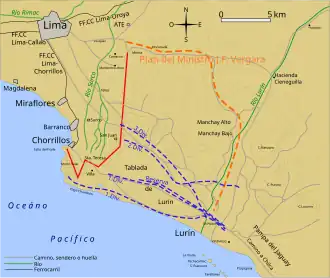 The Chilean high command had two approaches about how to handle this battle. The first one, proposed by Col. Jose Fco. Gana and supported by the War Minister in Campaign Jose Fco. Vergara was a flanking maneuver on the far left of the Peruvian defenses. On the other hand, the plan of General Baquedano was quite similar to the one used in Tacna. It consisted in pressing the attack simultaneously along the entire front line, keeping the Allies from sending reinforcements from one point to another, and exploiting the fact than this defensive line was extensive but thin. At last, Baquedano's plan prevailed, nevertheless a previous skirmish at Ate confirmed that Vergara's plan was possible.[5]