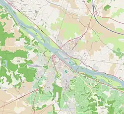 The lead elements of the Wehrmacht 1st Cavalry Division, the only horsed cavalry division in the German army (all others having converted to armoured cars and tanks), arrived at the river at Saumur just before midnight on 18 June. Reconnaissance units riding motorcycles with sidecars arrived first, followed by armoured cars. A 25 mm gun manned by Cadet Hoube scored the first hit.[1]: 94 It was the start of the battle that was to continue until 20 June. The French blew the Pont Napoleon at Saumur just after midnight, the Montsoreau bridge at 1:15 am and 1,700 kilos of melinite destroyed the railway bridge to the east of Saumur at 3:00 am.[3]: 60