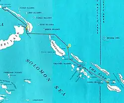 The Battle of Savo Island, also known as the First Battle of Savo Island and in Japanese sources as the First Battle of the Solomon Sea (第一次ソロモン海戦, Dai-ichi-ji Soromon Kaisen), and colloquially among Allied Guadalcanal veterans as the Battle of the Five Sitting Ducks,[4][5] was a naval battle during the Solomon Islands campaign of the Pacific War of World War II between the Imperial Japanese Navy and Allied naval forces. The battle took place on 8–9 August 1942 and was the first major naval engagement of the Guadalcanal campaign, the first of several naval battles in the straits later named Ironbottom Sound, near the island of Guadalcanal.