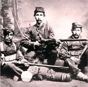 The infantry was equipped with Comblain and upgraded Gras rifles, which used the same type of bullets. The artillery had 37 cannon — 20 Krupp cannon and 17 mountain cannon.[9]