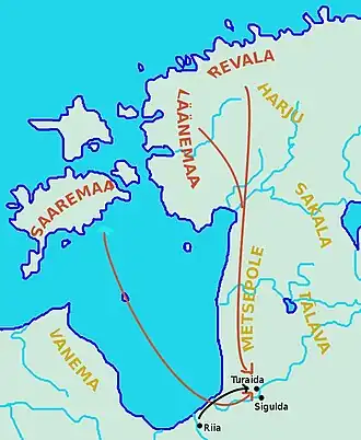 - ^ Mäesalu, Ain (1997). Eesti ajalugu (1. osa). Avita. p. 168. ISBN 9985-2-0043-8.