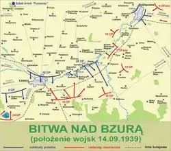 The Battle of the Bzura (or the Battle of Kutno) was the largest battle[3] of the German invasion of Poland and was fought from 9 to 19 September 1939.[4][5] It was a Polish counter-attack against the Germans.[6]