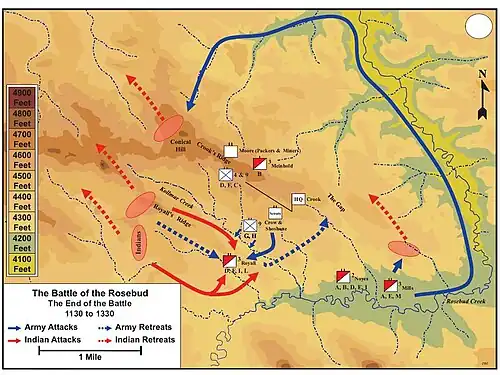 - ^ Wiles, Jr. Richard I. "The Battle of the Rosebud: Crook's Campaign on 1876" Fort Leavenworth:US Army Command and General Staff College, 1993, p. 49