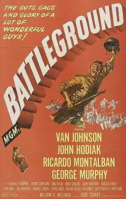 Battleground is a 1949 American war film directed by William A. Wellman and starring Van Johnson, John Hodiak, Ricardo Montalbán, George Murphy, and James Whitmore. It follows a fictional company of the 327th Glider Infantry Regiment, 101st Airborne Division as they fight in the siege of Bastogne during the Battle of the Bulge, in World War II. The screenplay was written by Robert Pirosh, based on his own experiences during the battle.