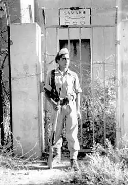 An Israeli reserve unit was called in from Tiberias. It arrived after twenty minutes and took positions around the town. At that point, Samakh (Tzemah) was defended by three platoons from the Barak battalion and reinforcements from neighboring villages.[16] They entrenched in the actual village,[1] which had been abandoned by the residents in April 1948, with British escort.[18] Positions in the village included the police station in the west, the cemetery in the north, the Manshiya neighborhood in the south, and the railway station.[17] The Syrians set up their positions in an abandoned British military base just east of the village and in an animal quarantine station to the southeast.[1]